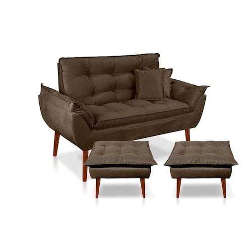 Kit C/ 01 Namoradeira Opala + 02 Puffs Opala + 02 Almofadas Suede Marrom