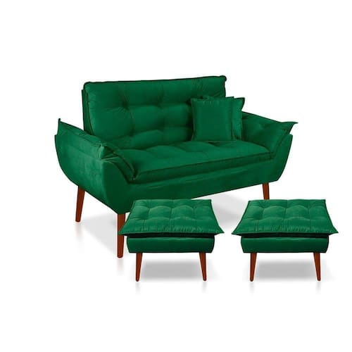 Kit C/ 01 Namoradeira Opala + 02 Puffs Opala + 02 Almofadas Suede Verde