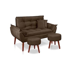 Kit C/ 01 Namoradeira Opala + 02 Puffs Redondo Danny + 02 Almofadas Suede Marrom -