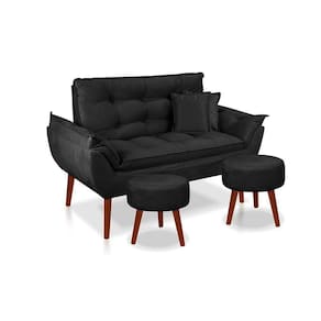 Kit C/ 01 Namoradeira Opala + 02 Puffs Redondo Danny + 02 Almofadas Suede Preto