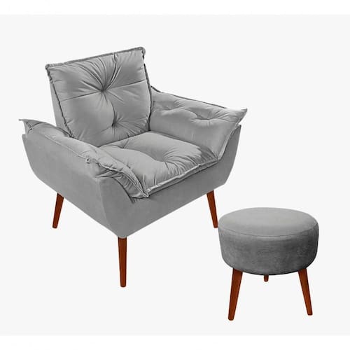 Kit C/01 Poltrona Opala + 01 Puff Redondo Danny Suede Cinza Claro