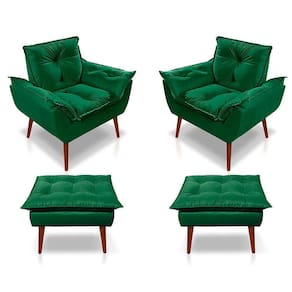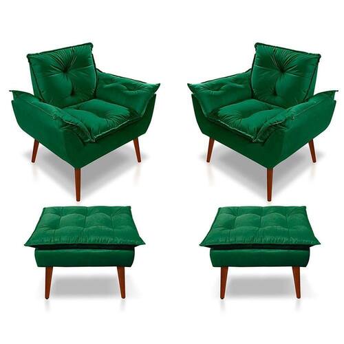 Kit C/02 Poltronas Opala + 02 Puff Opala Elegante Suede Verde