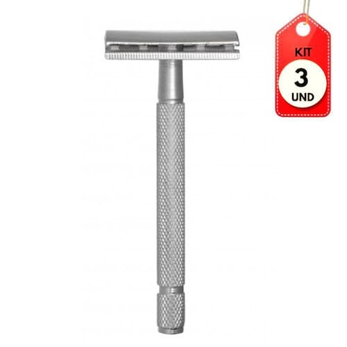 Kit C/03 Belliz 1747 Aparelho De Barbear Clássico DESCRIÇÃO: O Aparelho De Barbear Enox Clássico proporciona um barbear eficiente e preciso, pois corta o pele o mais próximo da raiz, prologando o efeito liso da pele.AÇÃO/ATIVOS: Com um cabo longo e texturizado antiderrapante que oferece melhor manuseio, trazendo maios sensibilidade do corte e do relevo do rosto, garantindo que o barbear seja mais eficiente e preciso. MODO DE USAR: Após preparar a pele, deslize o aparelho de barbear na região que deseja remover os pêlos.ESTE ANÚNCIO CONTÉM: 03 Belliz 1747 Aparelho De Barbear ClássicoKit C/03 Belliz 1747 Aparelho de Barbear ClÃssico