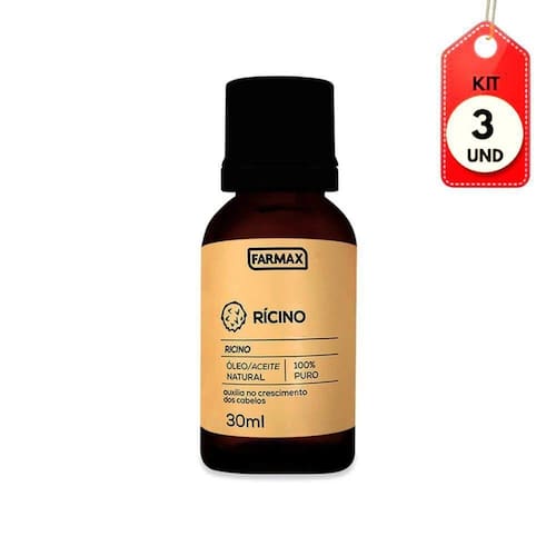 Kit C/03 Farmax óleo De Rícino 30ml DESCRIÇÃO:Óleo de rícino 100% Puro da farmax 30ml. Auxilia no crescimento, combate a queda de cabelos e promove a hidratação dos fios, deixando-os macios e radiantes. Óleo Natural de Rícino (Ricinus Communis Seed Oil), 100% puro.AÇÃO/ATIVOS:Manter fora do alcance das crianças. Proteger da luz solar direta e do calor excessivo. Não aplicar sobre a pele ou couro cabeludo irritado. Em caso de sensibilização, suspenda o uso e procure orientação médica.MODO DE USAR:Com os cabelos secos ou úmidos, aplique no couro cabeludo e faça massagens circulares para obtenção de resultados no crescimento e ação antiqueda. Aplique também nos fios capilares para hidratação, restauração do brilho e nutrição dos cabelos.ESTE ANÚNCIO CONTÉM: 03 UNIDADES DE FARMAX ÓLEO DE RÍCINO 30MLKit C/03 Farmax Ãleo de RÃcino 30ml