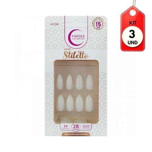 Kit C/03 Fhaces Stiletto Unhas Postiças Naturais C/28 DESCRIÇÃO:Conjunto de unhas postiças com 28 unidades de tamanho 14.AÇÃO/ATIVOS:Unhas postiças que são fáceis de encaixar e podem ser utilizadas tanto com esmalte quanto na cor natural, Além de serem resistentes e duráveis e também são superconfortáveis de usar.MODO DE USAR:Encosta-se a unha postiça na base da unha natural e empurra-se a cutícula com bastante cuidado, de modo que fique encaixada perfeitamente, parecendo natural, Em seguida, deve-se pressionar a unha postiça sobre o dedo por aproximadamente quinze segundos até que a cola esteja totalmente fixada.ESTE KIT CONTÉM: 03 UNIDADES DE FHACES STILETTO UNHAS POSTIÇAS NATURAIS C/28Kit C/03 Fhaces Stiletto Unhas PostiÃas Naturais C/28