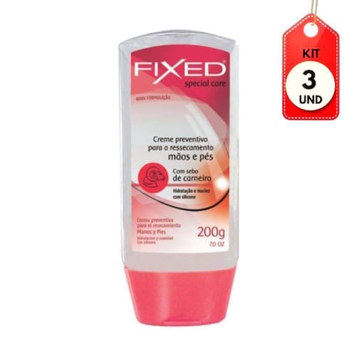 Kit C/03 Fixed Sebo Carneiro Creme Hidratante Mãos/ Pés 200g DESCRIÇÃO: Com uma nova formulação que proporciona uma profunda ação hidratante e estimula a regeneração celular.AÇÃO/ATIVOS: Seu uso frequente faz com que se forme uma película protetora, deixando-a macia e suavemente perfumada.MODO DE USAR: Mais informações estão descritas no verso da embalagem.ESTE ANÚNCIO CONTÉM: 03 Fixed Sebo Carneiro Creme Hidratante Mãos/ Pés 200gKit C/03 Fixed Sebo Carneiro Creme Hidratante MÃos/ PÃs 200g