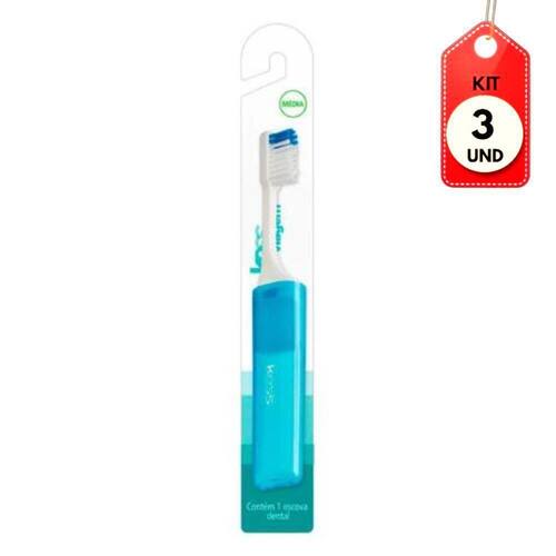 Kit C/03 Kess P/ Viagem Escova Dental Média DESCRIÇÃO: Todos os produtos clia são feitos sob rígidos controles de qualidade para a limpeza diária de seus dentes seja a mais eficiente possível.AÇÃO/ATIVOS: A cabeça da escova de dentes possui cantos arredondados e cerdas flexíveis para não agredir a boca, o cabo da escova possui um segundo tipo de material que garante maior controle e melhor manuseio na escovação, as cerdas arredondadas não agridem as gengivas delicadas e o esmalte dos dentes.MODO DE USAR: Escovar os dentes 3 vezes ao dia ou seguir recomendação do seu dentista.ESTE ANÚNCIO CONTÉM: 03 Kess P/ Viagem Escova Dental MédiaKit C/03 Kess P/ Viagem Escova Dental MÃdia