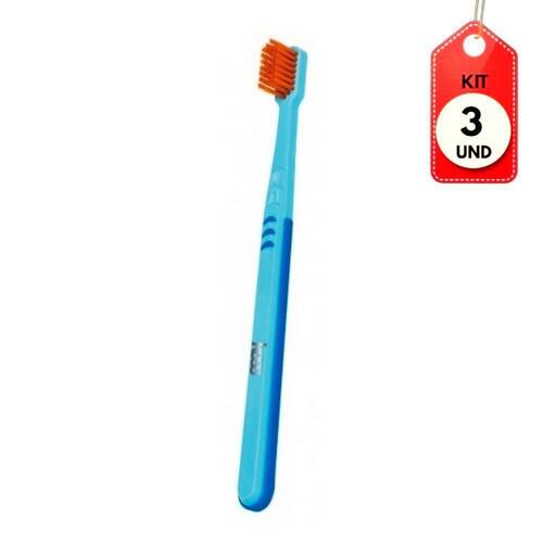 Kit C/03 Kess Pro Escova Dental Macia DESCRIÇÃO: A cabeça da escova de dente possui cantos arredondados e cerdas flexíveis para não agredir a boca, o cabo da escova, ao ser desacoplado da base vira um estojo protetor com ventilação, as cerdas arredondadas não agridem as gengivas delicadas e o esmalte dos dentes.AÇÃO/ATIVOS: Todos os produtos kess são feitos sob rígidos controles de qualidade para que a limpeza diária de seus dentes seja a mais eficiente possível,MODO DE USAR: Escove as superfícies voltadas para a bochecha dos dentes superiores e, depois, dos inferiores, escove as superfícies internas dos dentessuperiores e, depois, dos inferiores, em seguida, escove as superfícies de mastigação, enxague bem a boca.ESTE ANÚNCIO CONTÉM: 03 Kess Pro Escova Dental MaciaKit C/03 Kess Pro Escova Dental Macia