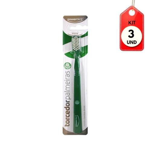 Kit C/03 Powerdent 1080 Palmeiras Escova Dental Macia DESCRIÇÃO: Escova torcedor ? macia ? Palmeiras.AÇÃO/ATIVOS: Cabeça em formato oval contendo 36 tufos e raspador de língua. Cerdas macias com pontas cuidadosamente arredondadas que limpam de modo suave dentes e gengivas. Cabo com empunhadura perfeita que proporciona muito mais conforto e controle durante a escovação.MODO DE USAR: Escovar os dentes superiores de cima para baixo e os inferiores de baixo para cima, com a escova posicionada num ângulo de 45. Na parte interna dos dentes da frente, a escova deve ficar na vertical. A parte de cima dos molares deve ser escovada em movimento vaivém.ESTE ANÚNCIO CONTÉM: 03 Powerdent 1080 Palmeiras Escova Dental MaciaKit C/03 Powerdent 1080 Palmeiras Escova Dental Macia