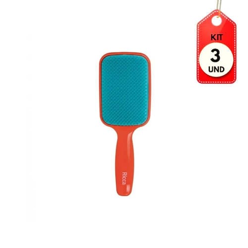 Kit C/03 Ricca Raquete Escova De Cabelo Red DESCRIÇÃO:Escova de cabelo com cerdas flexíveis de dupla altura. Desembaraça os fios secos ou molhados com maior facilidade, desfazendo os nós e diminuindo a quebra dos fios. Imagem meramente ilustrativa. O produto pode ter variação de cor ou desenho, porém as características gerais são as mesmas especificadas na descrição do produto. AÇÃO/ATIVOS:Perfeita para todos os tipos de cabelo. As cerdas flexíveis proporcionam uma agradável massagem no couro cabeludo, estimulando o crescimento e distribuindo a hidratação natural para todo comprimento do fio.MODO DE USAR:Descrição de uso via embalagem.ESTE KIT CONTÉM: 03 UNIDADES DE RICCA RAQUETE ESCOVA DE CABELO REDKit C/03 Ricca Raquete Escova de Cabelo Red