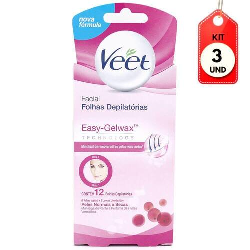 Kit C/03 Veet Peles Delicadas Folhas Depilatórias C/12 DESCRIÇÃO: Folhas Depilatórias Corporal Veet Peles Delicadas livre-se dos pelos e aproveite a nova e simples solução para deixar sua pele lisa e sensual.AÇÃO/ATIVOS: Ela foi cuidadosamente desenvolvida para você se sentir linda e preparada para qualquer ocasião. Você com a pele lisinha e macia por até 4 semanas! Agora você poderá sentir-se sempre radiante e com a pele lisa. É só depilar e sair!MODO DE USAR: Você só precisa de alguns segundos para esquentar a folha de cera fria entre suas mãos, aplicar e remover.ESTE ANÚNCIO CONTÉM: 03 Veet Peles Delicadas Folhas Depilatórias C/12Kit C/03 Veet Peles Delicadas Folhas DepilatÃrias C/12