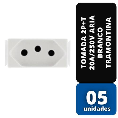 **KIT ECLUSIVO COM 05 UNIDADES**Tomada 2P+T 20A/250V Aria Branco TramontinaNa hora de realizar a ligação dos seus eletrônicos e eletrodomésticos, aposte em produtos de qualidade como o Módulo Tomada 2P+T Aria 10A 250V Branco. Ele é fabricado em termoplástico antichama, vem na cor branca e conta com acabamento brilho, características que garantem ambientes muito mais agradáveis.Tensão nominal: 250VMaterial: TermoplásticoCorrente: 20A Cor: BrancoDiâmetro dos furos: 10A - 4,30mm Temperatura de trabalho: Habitual 25°C Máxima 35°CConduto máximo 4mm²Índice de proteção: IP20Conteúdo da Embalagem: 1 TomadaReferencia: 2024071*Imagem Ilustrativa*Codigo: 80516Marca: Tramontina