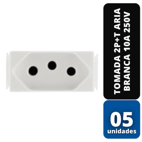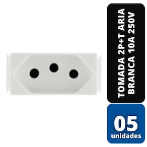 **KIT ECLUSIVO COM 05 UNIDADES**Tomada 2P+T Aria Branca 10A 250V - TRAMONTINANa hora de realizar a ligação dos seus eletrônicos e eletrodomésticos, aposte em produtos de qualidade como o Módulo Tomada 2P+T Aria 10A 250V Branco. Ele é fabricado em termoplástico antichama, vem na cor branca e conta com acabamento brilho, características que garantem ambientes muito mais agradáveis.*Compatível somente com placas de linha Aria;*Tensão nominal 250V*Corrente: 10A *Cor: Branco* Conteúdo da Embalagem: 1 Tomada*Diâmetro dos furos 10A - 4,30mm *Temperatura de trabalho: Habitual 25°C Máxima 35°C*Conduto máximo 4mm²*Tamanho (AxLxP): 3,5 x 2 x 1 cm*Peso: 0,002 kg*Índice de proteção: IP20*Referencia: 57217030*Imagem Ilustrativa**Codigo: KIT-80514-05*Marca: Tramontina