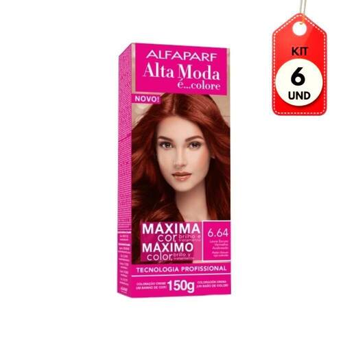 Kit C/06 Alta Moda Tinta R 6.64 Louro Escuro Vermelho Acobreado 150g