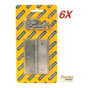 - Kit com 6 cartelas onde cada cartela contem 3 dobradiças + parafusos totalizando 18 peças avulsas - dobradiça para porta de passagem medida 3.1/2- cartela com 03 dobradiças + parafusos- para portas de ate 25 kg- medida: 86mm x 56mm a x l