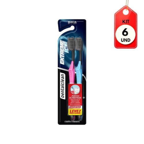 Kit C/06 Dentalclean Extreme Ice Escova Dental Macia C/2 DESCRIÇÃO:A escova de dentes Extreme Ice Dentalclean tem cerdas extremamente finas e macias, e em maio quantidade que as escovas normais. AÇÃO/ATIVOS:Suas pontas ultrafinas proporcionam maior remoção de resíduos entre dentes e gengivas e dando assim maior refrescância. MODO DE USAR:Também indicada para gestantese diabéticos, pois proporciona uma limpeza profunda e delicada.ESTE ANÚNCIO CONTÉM: 06 UNIDADES DE DENTALCLEAN EXTREME ICE ESCOVA DENTAL MACIA C/2Kit C/06 Dentalclean Extreme Ice Escova Dental Macia C/2