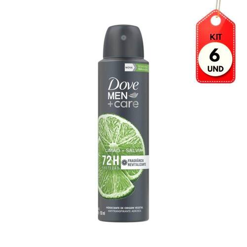 Kit C/06 Dove Men Care Limão E Salvia Desodorante Aerosol 150ml DESCRIÇÃO:Desodorante Antitranspirante Aerossol Limão com Salvia Dove Men Care foi desenvolvido para proteger e hidratar a pele, potente contra o suor, mas sem irritar a pele, pois é livre de álcool etílico. AÇÃO/ATIVOS:Sua fórmula é enriquecida com 1/4 de creme hidratante e sem álcool etílico, que promove proteção da pele contra irritações. Além disso, a Sálvia é conhecida por suas propriedades energizantes e pela capacidade de recarregar os sentidos e reabastecer a mente, melhorando assim a sensação de frescor e relaxamento. Imagem meramente ilustrativa. O produto pode ter variação de cor ou desenho, porém as características gerais são as mesmas especificadas na descrição do produto.MODO DE USAR:Agite a embalagem antes de usar e aplique um jato de dois segundos em cada axila, mantendo uma distância de 15 centímetros da pele.ESTE KIT CONTÉM: 06 UNIDADES DE DOVE MEN CARE LIMÃO E SALVIA DESODORANTE AEROSOL 150MLKit C/06 Dove Men Care LimÃo e Salvia Desodorante Aerosol 150ml