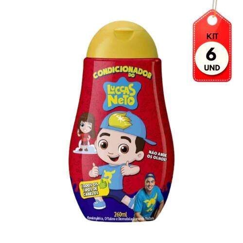 Kit C/06 Luccas Neto Todos Os Tipos Condicionador 260ml DESCRIÇÃO:Condicionador Luccas Neto Todos os Tipo de Cabelos. Imagem meramente ilustrativa. O produto pode ter variação de cor ou desenho, porém as características gerais são as mesmas especificadas na descrição do produto.AÇÃO/ATIVOS:O CondicionadorTodos os Tipos de Cabelos do Luccas Neto foi desenvolvido para atender todos os tipos de cabelos, tem uma fórmula exclusiva com pH balanceado. Contém extrato de camomila, extrato de frutas tropicais que proporcionam maior maciez e vitalidade, além de realçar seu brilho e cor.MODO DE USAR:Mais informações via embalagem.ESTE KIT CONTÉM: 06 UNIDADES DE LUCCAS NETO TODOS OS TIPOS CONDICIONADOR 260MLKit C/06 Luccas Neto Todos Os Tipos Condicionador 260ml