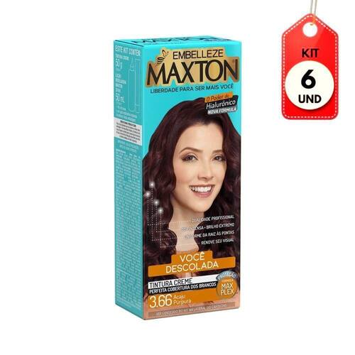 Kit C/06 Maxton Tinta 3.66 Acaju Púrpura DESCRIÇÃO: Maxton é a tintura que entende sua personalidade e seus desejos, ajudando você a revelar o máximo do seu potencial. Porque só Maxton tem a mais elegante variedade de cores intensas e radiantes, com perfeita cobertura dos fios brancos. Com Maxton você tem liberdade para ser mais você.AÇÃO/ATIVOS: Para todos os tipos de tipos de cabelos. Pinta os cabelos com perfeita cobertura dos fios brancos. Queratina, cerâmicas e silicone. Cor intensa e radiante. Perfeita cobertura dos fios brancos.MODO DE USAR: Mais informações estão contidas no verso da embalagemESTE ANÚNCIO CONTÉM: 06 Maxton Tinta 3.66 Acaju PúrpuraKit C/06 Maxton Tinta 3.66 Acaju PÃrpura