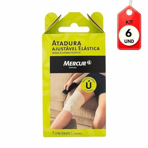 Kit C/06 Mercur Atadura Elástica Ajustável Branca 10cmx1.2m DESCRIÇÃO:Ideal para enfaixamentos compressivos em casos de varizes, pós-operatórios e edemas. Indicada também para prevenção e tratamento de lesões musculares e articulares em atividades físicas ou em casos de LER e/ ou DORT. Confeccionada em elástico confortável e de alta resistência, que proporciona compressão adequada. Disponível em três tamanhos e contém quatro presilhas de metal que facilitam a fixação.AÇÃO/ATIVOS:37% Elastodieno, 34% Poliéster, 29% AcrílicoMODO DE USAR:Enfaixe o local desejado e fixe a faixa utilizando as presilhas que acompanham o produto.ESTE ANÚNCIO CONTÉM: 06 UNIDADES DE MERCUR ATADURA ELÁSTICA AJUSTÁVEL BRANCA 10CMX1.2MKit C/06 Mercur Atadura ElÃstica AjustÃvel Branca 10cmx1.2M