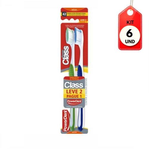 Kit C/06 Powerdent Powerclass Escova Dental Média C/2 DESCRIÇÃO:Os produtos são desenvolvidos com muita qualidade, atendendo as diferentes necessidades ortodônticas dos brasileiros. AÇÃO/ATIVOS:Seu formato com cerdas pequenas e arredondadas não permite que as gengivas sejam machucadas.Além de facilitar a eliminação da placa bacteriana entre os dentes e a região da gengiva, evitando o mau hálito, a escova também oferece higiene bucal completa e eficiente. MODO DE USAR:Segure a escova em um ângulo de 45 graus e escove com movimentos que vão da gengiva à ponta dos dentes. ESTE ANÚNCIO CONTÉM: 06 UNIDADES DE POWERDENT POWERCLASS ESCOVA DENTAL MÉDIA C/2Kit C/06 Powerdent Powerclass Escova Dental MÃdia C/2