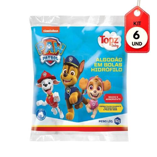 DESCRIÇÃO:Algodão Patrulha Canina Topz é composto por fibras de algodão alvejadas, isentas de impurezas, substâncias gordurosas e alvejante óptico, em formato redondo.AÇÃO/ATIVOS:Asseguram a maciez e alto poder de absorção de líquidos aquosos e gordurosos. Seu formato facilita a higienização e assepsia da pele, remoção de maquiagem, esmalte e higiene do bebê. Imagem meramente ilustrativa. O produto pode ter variação de cor ou desenho, porém as características gerais são as mesmas especificadas na descrição do produto.MODO DE USAR:Utilize para limpeza da pele e das unhas.ESTE KIT CONTÉM: 06 UNIDADES DE TOPZ PATRULHA CANINA ALGODÃO BOLAS 50GKit C/06 Topz Patrulha Canina AlgodÃo Bolas 50g