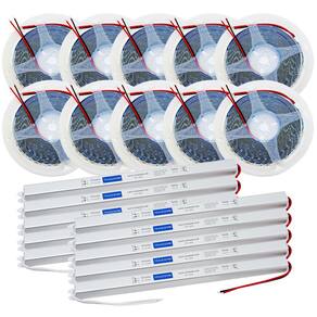 Nesse Kit você vai receber 10 Un - Fita Led 2835 Rolo 5 Metros 120 Leds/m 12v Ip20 10w/m Cores - Branco Neutro 10 Un - Fonte Driver Slim Mini 12v 60w 5a Bivolt Fita Led Cftv