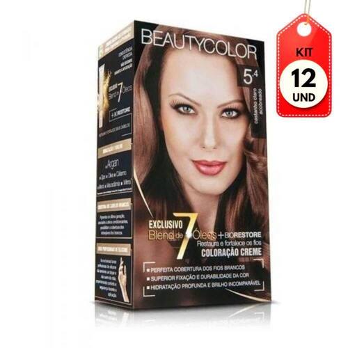Kit C/12 Beautycolor Tinta Kit 5.4 Castanho Claro Acobreado DESCRIÇÃO: Coloração permanente perfeita cobertura dos fios brancos. Superior fixação e durabilidade da cor. Hidratação profunda, maciez e brilho incomparável.AÇÃO/ATIVOS: Exclusivo blend de óleos + biorestore: Complexo de aminoácidos essenciais + nutrientes. Garante força, resistência e reparação dos fios.MODO DE USAR: Aplicação fácil segura e uniforme: A textura cremosa, um prático e moderno frasco aplicador e as exclusivas luvas profissionais (de silicone), tornam a aplicação fácil e segura. O resultado e surpreendente: Cor uniforme e brilhante, cabelos profundamente tratados.ESTE ANÚNCIO CONTÉM: 12 Beautycolor Tinta Kit 5.4 Castanho Claro AcobreadoKit C/12 Beautycolor Tinta Kit 5.4 Castanho Claro Acobreado