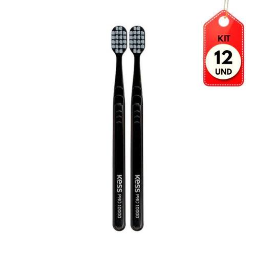Kit C/12 Kess Escova Dental Pro 10k Extra Macia C/2 DESCRIÇÃO:Escova Dental Pro 10k Kess possui cerdas extra macias e ultrafinas de material especial que oferecem maior conforto na escovação, são gentis com a gengiva e mantém a limpeza ideal dos dentes. AÇÃO/ATIVOS:Seu formato com cerdas pequenas e arredondadas não permite que as gengivas sejam machucadas. Além de facilitar a eliminação da placa bacteriana entre os dentes e a região da gengiva, evitando o mau hálito, também promove higiene bucal competa e eficiente. Imagem meramente ilustrativa. O produto pode ter variação de cor ou desenho, porém as características gerais são as mesmas especificadas na descrição do produto.MODO DE USAR:Escove os dentes diariamente depois de cada refeição, pelo menos 3 vezes ao dia ou segundo orientação do seu dentista. ESTE KIT CONTÉM: 12 UNIDADES DE KESS ESCOVA DENTAL PRO 10K EXTRA MACIA C/2Kit C/12 Kess Escova Dental Pro 10k Extra Macia C/2
