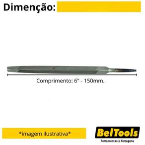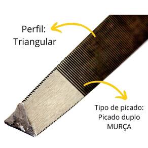 Descrição: Possui picado duplo e corte grosso que proporciona maior desbaste. Indicação: Indicada para desbastar metais com superfícies angulares internas e cantos de ângulos retos. Dureza: 58-62 HRC. Comprimento: 6" - 150mm. Cabo: Sem cabo. Perfil: Triangular Tipo de picado: Picado duplo - MURÇA