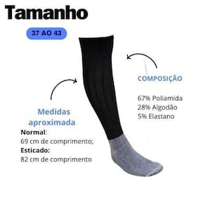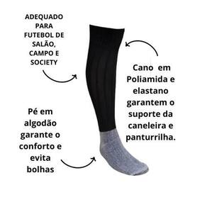 Kit c/12 Meiões de Futebol com pés em Algodão Conforto Adulto Cor: Preto Descrição Kit com 12 Meiões tradicionais para futebol - Ideal para fardamentos Produzido com pé em algodão que garante o conforto e evita bolhas durante a pratica do esporte. Corpo e cano do meião em poliamida e elastano garantem o suporte da caneleira e panturrilha. Medidas aproximadas: - Normal: 69 cm de comprimento; - Esticado: 82 cm de comprimento; - Tamanho: 37 ao 43. Composição - 67% Poliamida; - 28% Algodão; - 5% Elastano. Conteúdo da embalagem: - 12 pares de meias. do fabricante: 30 dias Marca: Não Informado