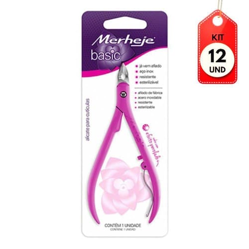 Kit C/12 Merheje Basic Rosa Perolado Alicate De Cutícula DESCRIÇÃO: O Alicate para Cutículas Merheje Basic garante um corte preciso e de longa duração. Não enferruja, e a sua mola com desenho exclusivo permite um deslizamento suave.AÇÃO/ATIVOS: A ponta do alicate em aço inoxidável aumenta a durabilidade do produto. Pode ser esterilizado a 125C por 01 hora. Afiado de fábrica. Aço inoxidável e polipropileno.MODO DE USAR: Amoleça a cutícula em água ou emoliente. Com o Alicate para Cutículas Merheje Basic retire-as acompanhando o formato de suas unhas. Sua afiação especial garante um corte rápido e preciso. Quando necessário, lubrifique as áreas articuláveis com óleo fino.ESTE ANÚNCIO CONTÉM: 12 Merheje Basic Rosa Perolado Alicate De CutículaKit C/12 Merheje Basic Rosa Perolado Alicate de CutÃcula