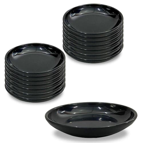 Kit C/12 Molheira Pires Sashimi Japonesas Shoyu MolheiraDescrição:Molheira com acabamento preto laqueado de excelente qualidadePeça indispensáveis para amantes da culinária oriental. Com cores fortes inspiradoras nas tradicionais decorações japonesas. Perfeita para apreciar a culinária japonesa entre amigos e familiares de forma tradicional.- Recomendado para colocar o molho de soja para molhar o sushi ou sashimi.- Facilita e dar mais estilo às suas refeições orientais.Cuidados:- Lavar com água morna e sabão neutro utilizando esponja macia, seguido de pano seco.- Não utilizar produtos químicos ou abrasivos na limpeza. - Não vai a lava-louças.Características:Altura: 1,7 cmLargura: 8,7cmComprimento: 8,7cmCapacidade: 50mlCor: PretoMaterial: A.B.SConteúdo:- 12 x Unidade de molheira redonda pretaCód: 1779SKU: TB004819
