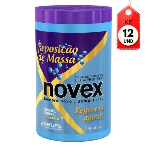 Kit C/12 Novex Repositor De Massa Creme De Tratamento 1kg DESCRIÇÃO: Cabelos que passam por transformações químicas como alisamentos e escovas, precisam de um tratamento duradouro para recuperar os fios e a saúde capilar: isto é o que Novex Reparação Total do Fio proporciona. A MaxLanolina, presente em sua fórmula, é um poderoso agente amaciante que combate o ressecamento dos cabelos, penetrando na fibra capilar e restaurando o seu teor de hidratação natural. Além de brilho, maciez e proteção, o seu poder de revitalização vai dar uma nova vida aos fios. AÇÃO/ATIVOS: Novex reparação total do fio devolve aos cabelos a queratina, selando as cutículas e tendo como resultado um cabelo saudável, nutrido e com brilho de salão.MODO DE USAR: Ritual de Reparação Total do Fio. Lave os fios com o shampoo Vitay Óleo de Argan, enxágue e retire o excesso de água. Aplique Novex Max Keratin e deixe agir por 5 minutos. Sem enxaguar, aplique o Reparação Total do Fio e deixe agir por + 15 minutos. Enxágue bem. Aplique o Novex Blindagem Capilar e prossiga com a escova e prancha. Para finalizar, use o Nutrire Reparador de Pontas Queratina Absoluta.ESTE ANÚNCIO CONTÉM: 12 Novex Repositor De Massa Creme De Tratamento 1kgKit C/12 Novex Repositor de Massa Creme de Tratamento 1kg