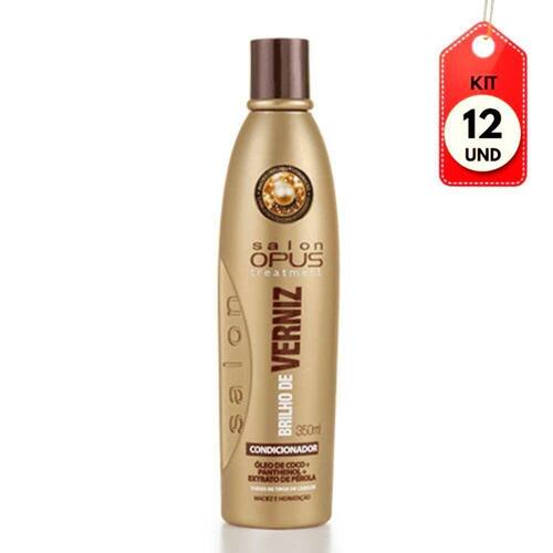 Kit C/12 Salon Opus Brilho De Verniz Condicionador 350ml DESCRIÇÃO: A linha Salon Opus Treatment Brilho de Verniz foi desenvolvida exclusivamente para você que deseja brilho intenso, sem perder o movimento natural.AÇÃO/ATIVOS: Inspirada em ingredientes da natureza, da terra e do mar, alinha os fios, doando ultra brilho, maciez e reduzindo o frizz.MODO DE USAR: Aplique nos cabelos lavados, massageando suavemente. Enxágue.ESTE ANÚNCIO CONTÉM: 12 Salon Opus Brilho De Verniz Condicionador 350mlKit C/12 Salon Opus Brilho de Verniz Condicionador 350ml