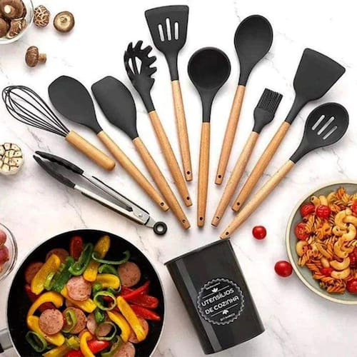 Indicado para quem busca mais versatilidade e dinamismo na sua cozinha na hora de preparar seus alimentos, o kit de utensílios com 12 peças possui design simples e prático, muito adequado para o uso diário, para atender todas as suas necessidades culinárias.