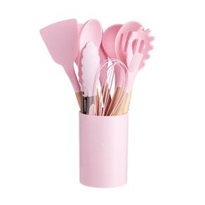 Kit C/12 Utensílios De Cozinha Silicone Cabo Madeira