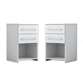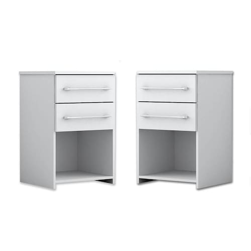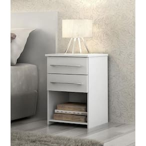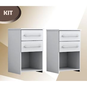 KIT COM 2 MESAS DE CABECEIRA BRUNA | Cada uma com 2 gavetas em corrediças metálicas e espaço para livros a mesa de cabeceira Bruna vai deixar o seu quarto mais organizado. Possui um design moderno e puxadores cromados. Além disso, o produto possui uma fácil montagem. A mesa possui montagem flex com as gavetas podendo ser montadas tanto para cima como para baixo.
