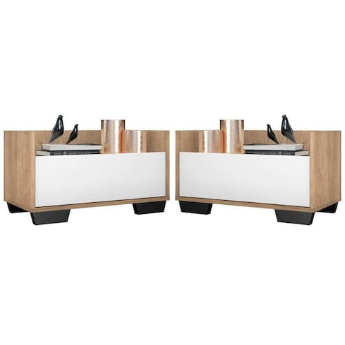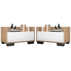 Kit c/ 2 Mesas de Cabeceira 80 cm c/ Pés Quadrados Multimóveis Rustic/Branco/Preto - Marrom