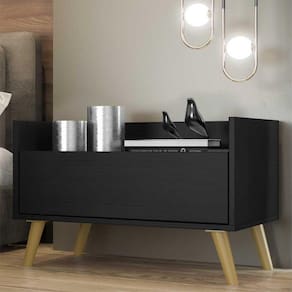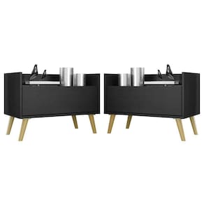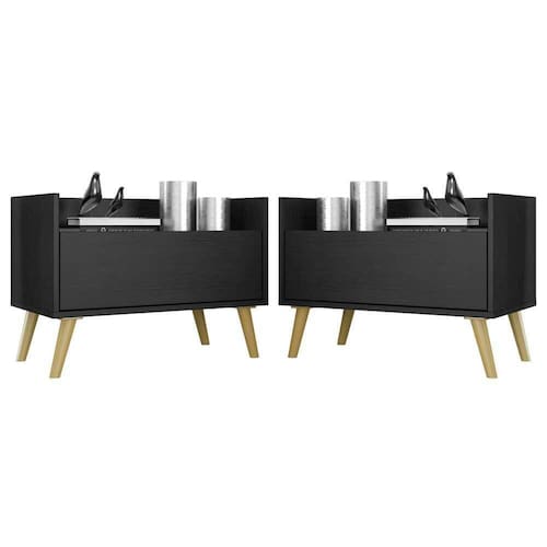 Kit c/ 2 Mesas de Cabeceira 80 cm c/ Pés Retrô Multimóveis Preta/Natural - Preto