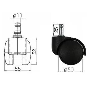 CARACTERÍSTICAS DO PRODUTO - Pino removível - Diâmetro da roda: 50mm - Pino removível com 11mm de espessura e 25mm de altura - Pino com anel elástico para fixação - Composição: Corpo e Roda em Nylon, eixo e pino em Aço SAE1020. - Roda Revestida com Poliuretano, NÃO RISCA O CHÃO - Certificação ABNT NBR 13962/06 - Carga por rodízio: 30kg