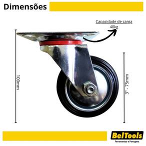 Rodízio Giratório de Borracha 3 Polegadas 75mm Beltools