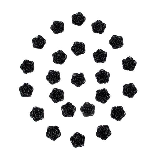 Kit C/24 Miçangas em Resina Flor Rosa Negra 2 cm