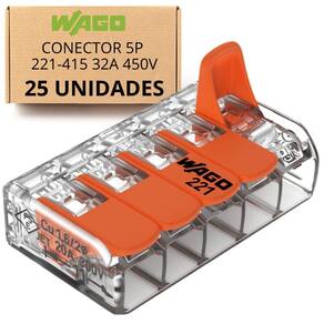 KIT C/ 25 CONEXÃO AUTOMÁTICA 5P 221-415 32A 0,14-4mm² WAGO