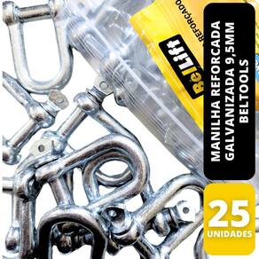Manilha reforçada galvanizada 9,5mm - Beltools (caixa c/ 25 pcs) Conteúdo:Caixa com 25 peças.Descrição:Possui tratamento galvanizado, que garante maior resistência à oxidação/corrosão e pino reforçada proporcionando maior durabilidade.