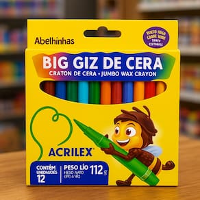 Kit com 3 caixas de Giz de Cera Big Acrilex, ideal para atividades escolares e recreativas. Cada caixa contém 12 cores vibrantes, com textura macia e excelente cobertura. O formato Big facilita o manuseio pelas crianças, oferecendo mais conforto e resistência durante o uso. Produto de alta qualidade, indicado para estimular a criatividade e a coordenação motora. Dimensões da caixa: 14 x 14 x 4,5 cm. Ideal para escolas, professores, pais e uso doméstico.