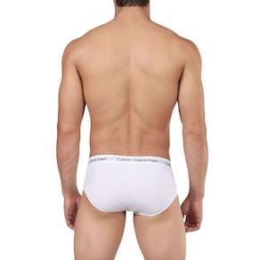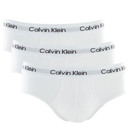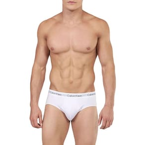 Kit contendo 3 unidades de cuecas Calvin Klein modelo Brief (Slip) confeccionadas em 95% Algodão e com elástico aparente personalizado de 35 milímetros.