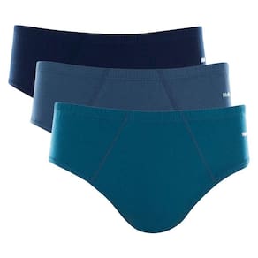 Kit composto por 3 cuecas Mash modelo Slip fabricadas em tecido 100% Algodão, com corte lateral levemente mais largo e elástico embutido. A fibra natural garante a durabilidade e o conforto.