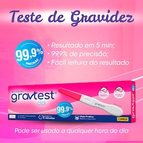 Teste Gravidez Gravtest Click: Segure a tira-teste do exame em seu fluxo de urina ou recolha a amostra em um recipiente limpo e mergulhe a tira-teste; Mantenha a tira em contato com a urina por pelo menos cinco segundos; Em seguida, aguarde cerca de 5 minutos para o resultado.