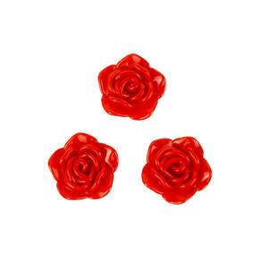 Kit C/3 Miçangas em Resina Flor Rosa Vermelha 2 cm